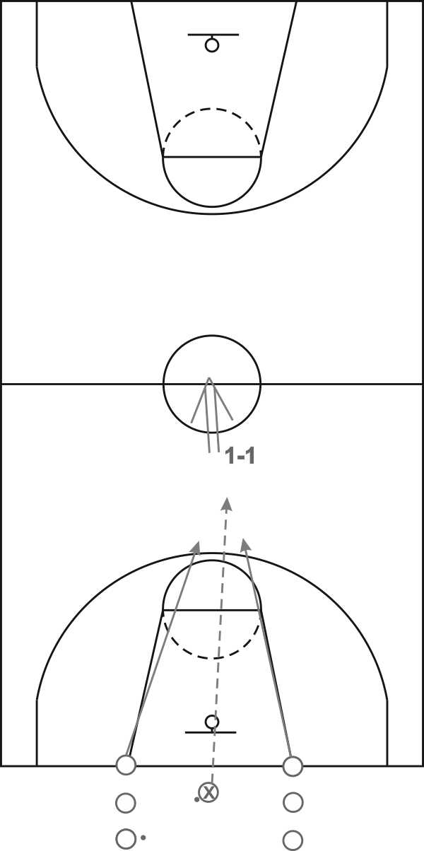 Na pokyn trenéra oba hráči vybíhají ke koši. Útočník se snaží zakončit střelbou na koš, úkolem obránce je útočníka dostihnout a zabránit mu ve střelbě.