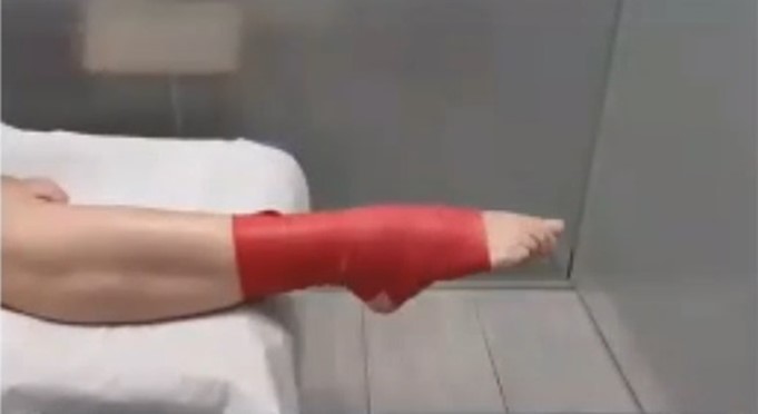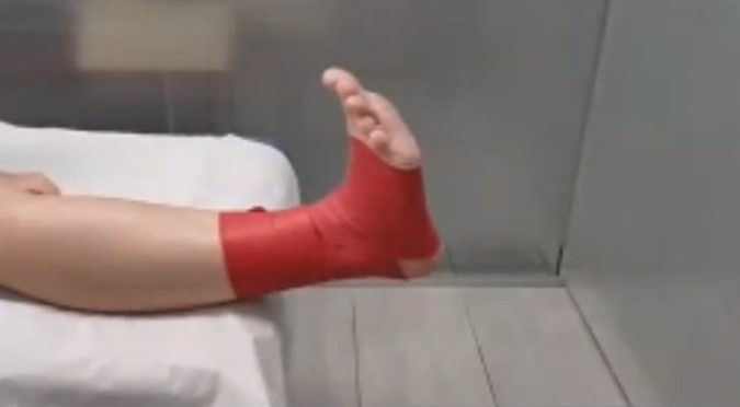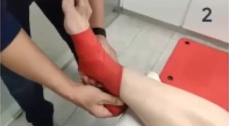 Obr. č. 11 Aplikace flossbandu v oblasti kotníku