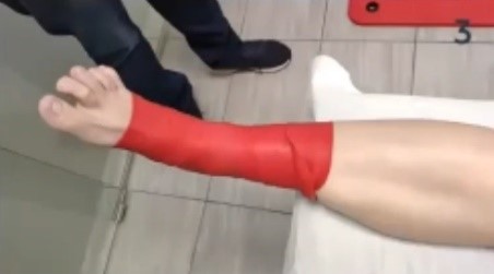 Obr. č. 15 Aplikace flossbandu v oblasti bérce