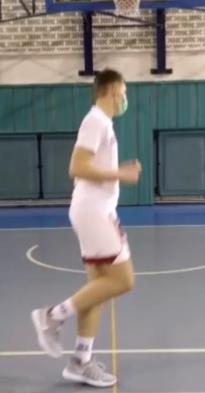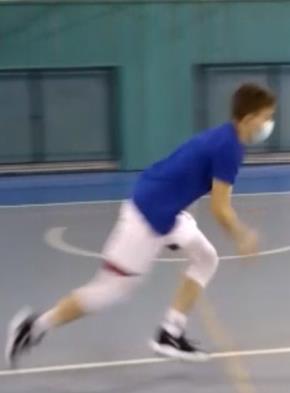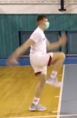 U tohoto cviku využijeme oporu zdi (případně spoluhráče). Primárně zatěžujeme stojnou nohu (na obr. č. 21 se jedná o levou nohu), která se se snaží co největší sílou a co největší rychlostí zatlačit do palubovky a tím přenést těžiště vpřed do směru předpokládaného pohybu. Nicole Rodriguez označuje tuto nohu a její schopnost generovat sílu jako “Money leg”.