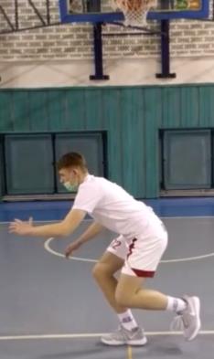 V dalším cviku začíná hráč třemi výskoky snožmo vzhůru, ihned po třetím dopadu dochází ke stabilizaci ve sníženém postoji.