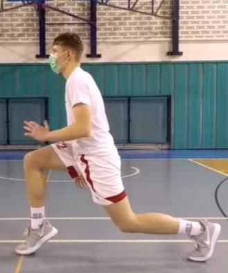 Výpad vzad ve vzpažení s posilovacím tubusem je cvik, který vyžaduje dobrou koordinaci, trupovou stabilizaci a dostatečnou mobilitu hrudní páteře a ramenního kloubu. Na začátek provedení 4 x na každou stranu, aby mladí sportovci získali sebedůvěru v provedení.