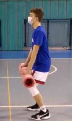 Opět je možné využít izometrický tlak. V tomto případě se jedná o izometrický tlak ve výponu na špičce s využitím tyče (hráč se snaží tyč odtlačit vzhůru se stále mírně ohnutým kolenem).