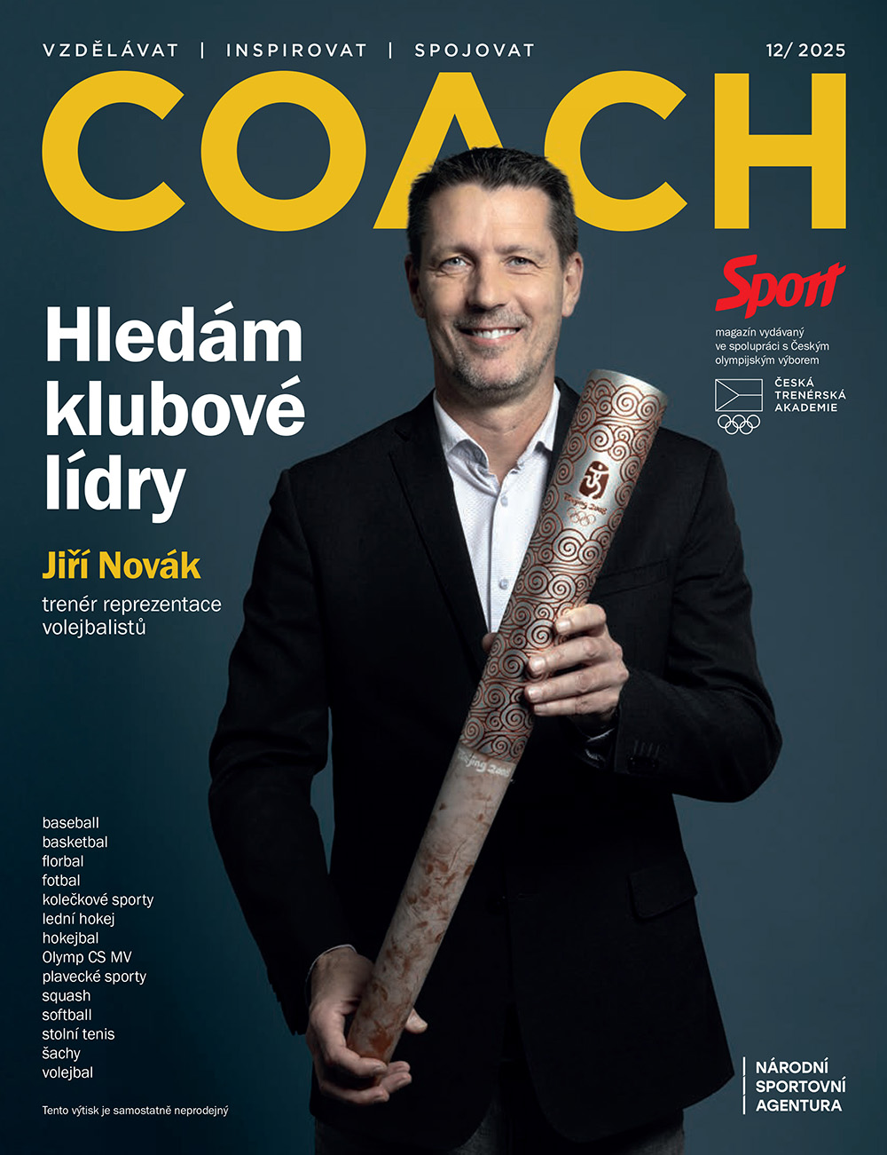 Magazín COACH, který vychází jako měsíční příloha deníku Sport, je unikátním projektem České trenérské akademie ČOV. Jeho cílem je zavést poutavým způsobem sportovní fanoušky do problematiky základního vztahu v každém týmu, do vztahu trenér - hráč. Jaký podíl má kouč na zrodu hvězdy? Je lepší tým plný hodných chlapců nebo kontroverzních hvězd? Je lepší v kabině o přestávce týmu domlouvat nebo na něj křičet? Jaká jsou specifika sportovní přípravy dětí a mládeže? To jsou jen některé z otázek, na které vám magazín COACH bude pomáhat nacházet odpovědi.