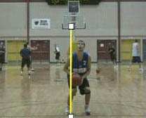 - Nohy jsou přibližně v šíři ramen, střelecká noha směřuje přesně na koš. Druhá noha je buď rovnoběžně se střeleckou nohou, nebo lehce za ní.