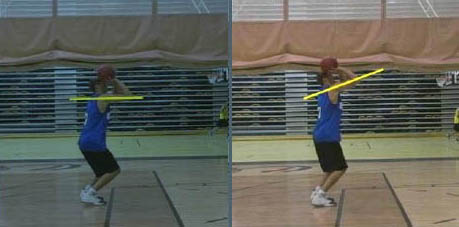 - Střeleckou ruku strhne hráč dolů již při vypouštění míče (chybí „follow through“).