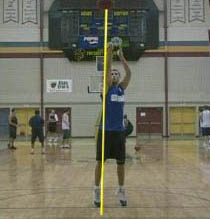 - Kotník a koleno střelecké nohy, rameno a koš jsou v jedné ose.