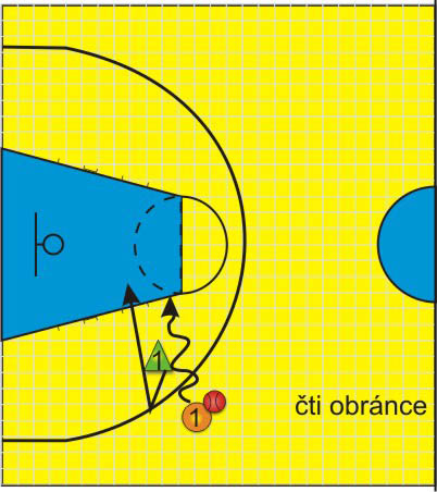 - Získat protipohyb obránce např. váhavým pohybem a zakončit pod obráncem do koše