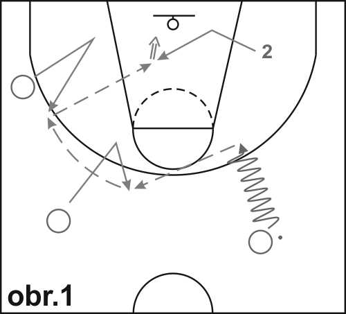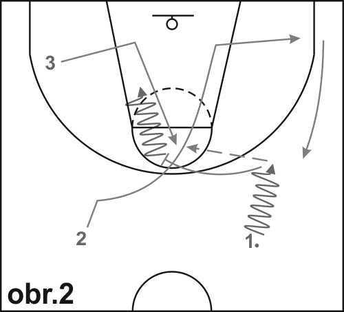 Příklad vidíme na obrázku 1 – uvolnění hráče bez míče ze slabé strany do vnitřního prostoru, kterému předchází přenesení míče od jedné postranní čáry k druhé. V tomto jednoduchém průpravném cvičení, které může být součástí i vašeho konceptu hry, se hráči také učí, jak driblovat, a kam se koukat, jak a kdy se uvolňovat bez míče, jak zakončit, jak, kdy a kde chytit míč a obrátit se čelem ke koši, co by měli vidět, když chtějí přihrát do vnitřního prostoru, jaké dodržovat rozmístění na hřišti a zároveň se podílet na správné načasování spolupráce celé čtveřice.