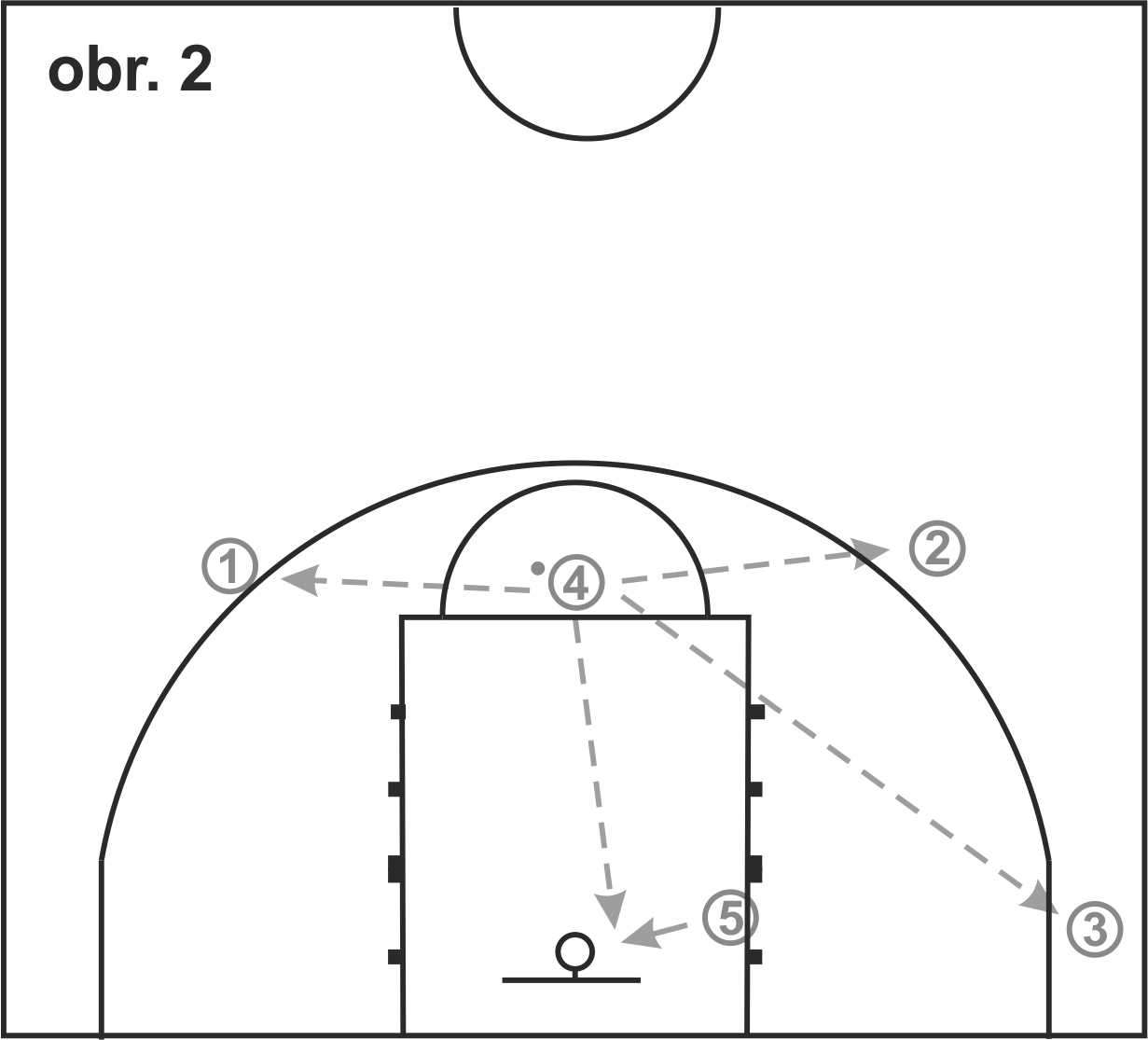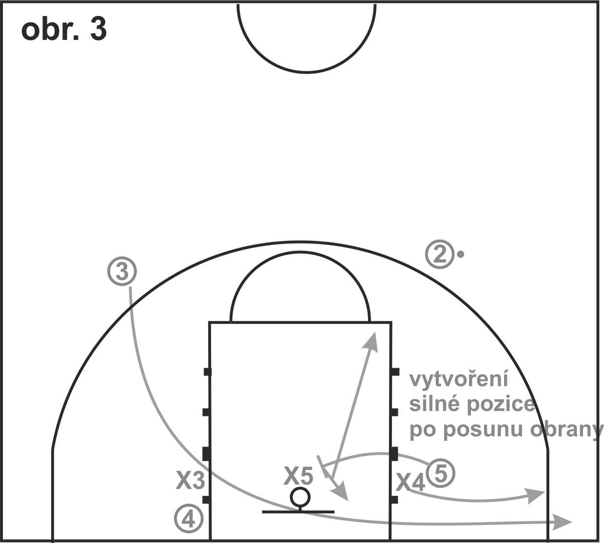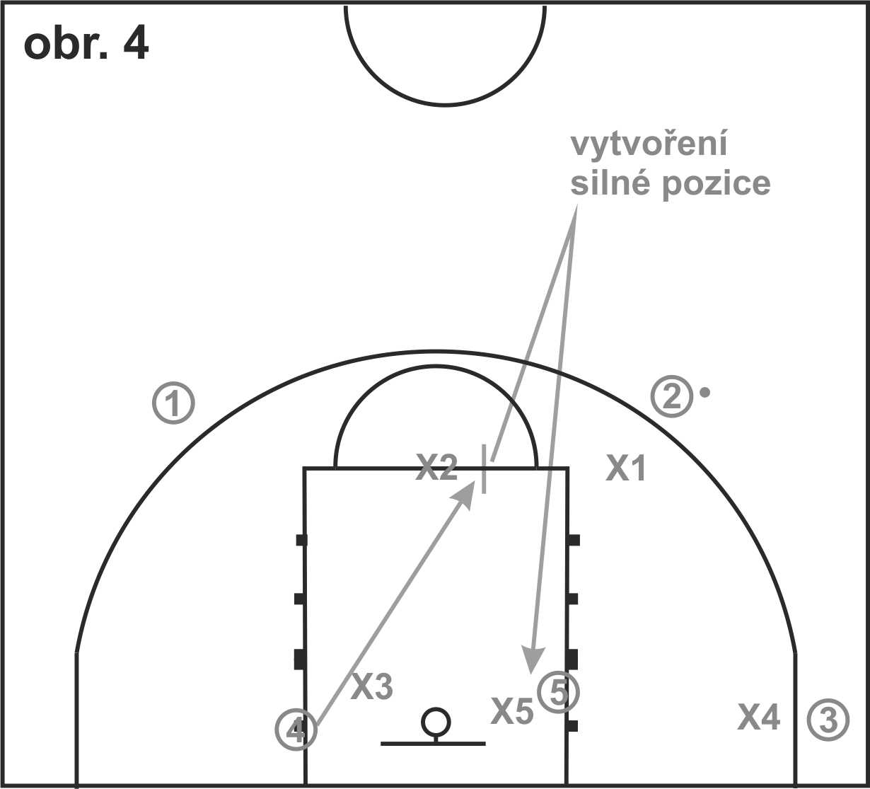 - Velmi důležité je roztahovat obranu nejenom do šířky, ale i dohloubky, proto například na obr 1. hráč 4 musí začínat v pozicina koncové čáře.
