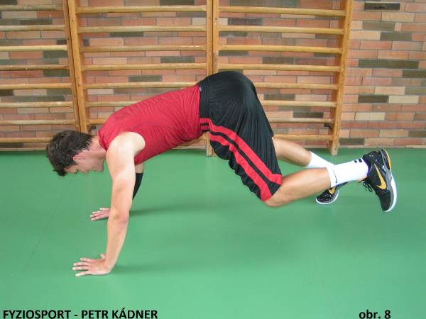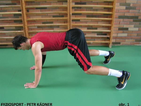 Nakonec uvedu již výše zmiňovaný cvik „Medvěd“ (obr. 1). Při tomto cviku, jehož stupeň obtížnosti je pro dolní fixátory lopatky velmi vysoký, dochází i k mohutné aktivaci trupového svalstva a vlastně již většiny svalů spadajících do skupiny hlubokých stabilizátorů neboli CORE.