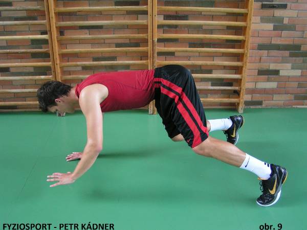 Medvěd se pak dále ztěžuje odlehčováním nebo zvedáním střídavě všech čtyřech končetin bez souhybů trupu či zbývajících končetin (obr. 8 a 9). U všech cviků výše uvedených je důležité pravidelné dýchání.