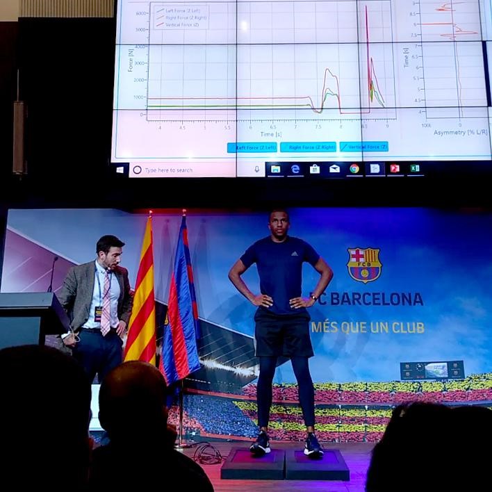 Tyto body perfektně demonstruje test vertikálního výskoku (obrázek č. 3) s využitím již dříve zmíněných silových desek. Celé testování proběhne relativně rychle, protože sportovec provede pouze několik opakování (nejčastěji 3) maximálního výskoku z místa, odděleného několika sekundami odpočinku (10 sekund je dostačujících). K realizaci testování potřebujeme relativně málo vybavení (ideálně pouze 2 silové desky a počítač). Po rychlé analýze silového působení v průběhu odrazu a dopadu a trvání jednotlivých fází získáme informaci o síle a rychlosti odrazu, výšce výskoku, tvrdosti dopadu, ale i stranové asymetrii - rozložení hmotnosti, rozdíl v odrazové síle a rozdíl v zatížení při dopadu mezi pravou a levou dolní končetinou (pokud je každá noha měřená samostatnou deskou) (obr. č. 4). Aplikací tohoto přístupu a vhodně zvoleným testem, můžeme za pár minut získat profil sportovce, který poslouží jak k individualizaci tréninkového programu, tak i k tvorbě strategie působící na prevenci zranění.